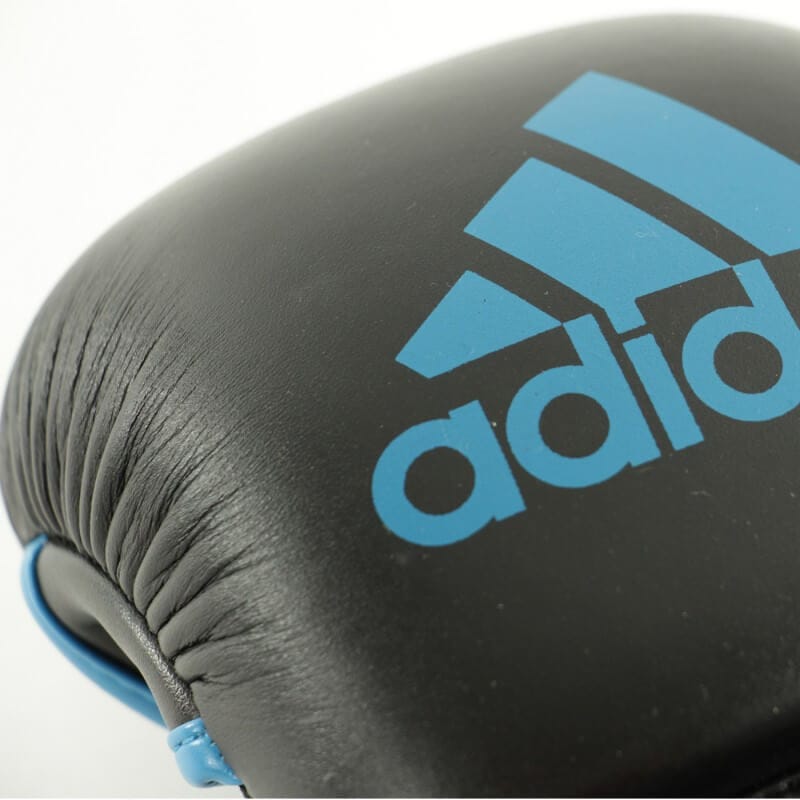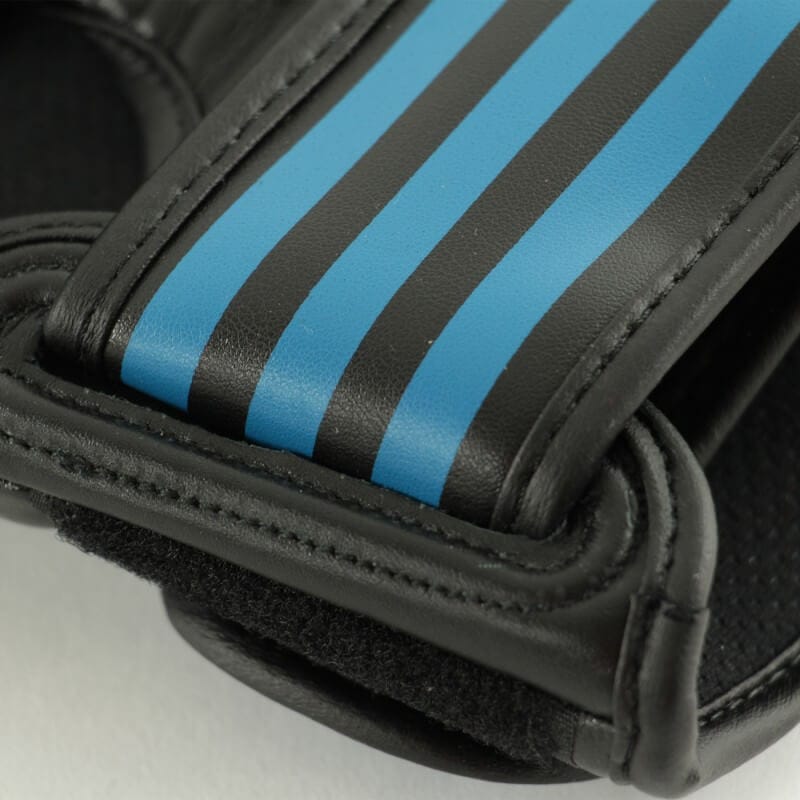 Die Freikampfhandschuhe Adidas sind mit Leder im Schlagbereich und PU in den anderen Bereichen gestaltet. Dichte, dicke EVA-Schaumstoffpolsterung, i-confort+ Gewebe im Bereich der Handfläche. Schutz am Daumen.