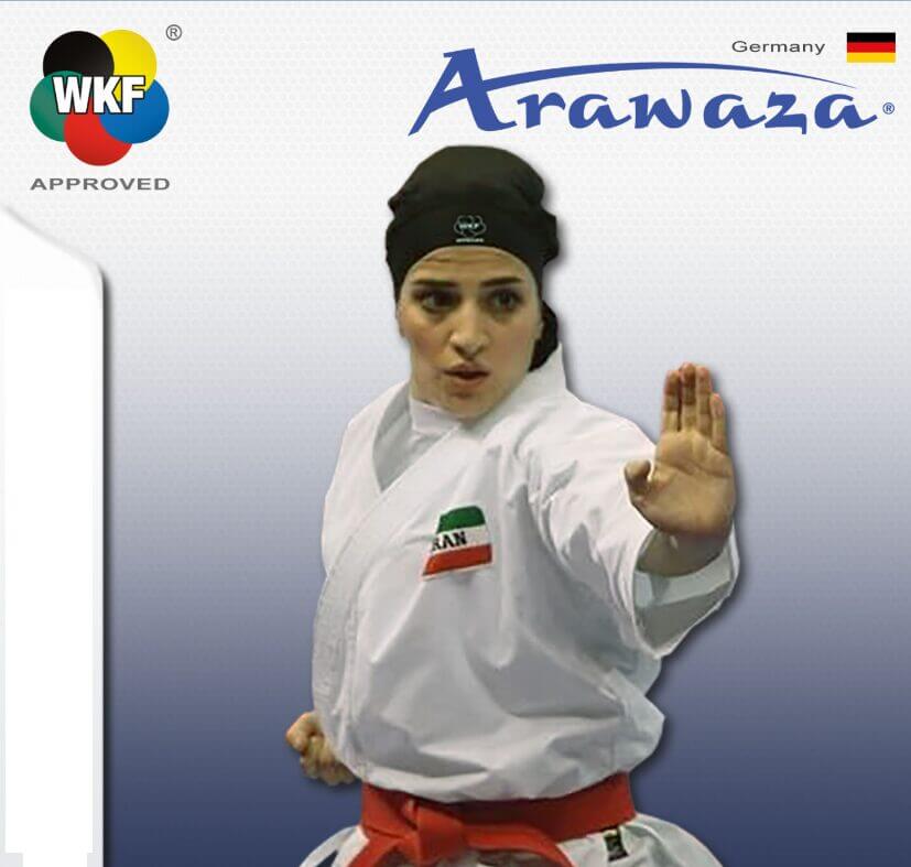 Hijab Arawaza von der WKF für muslimische Athletinnen zugelassen. Offiziell zugelassen seit dem 01.01.2013. Verstellbar durch Gummiband und Klettverschluss.