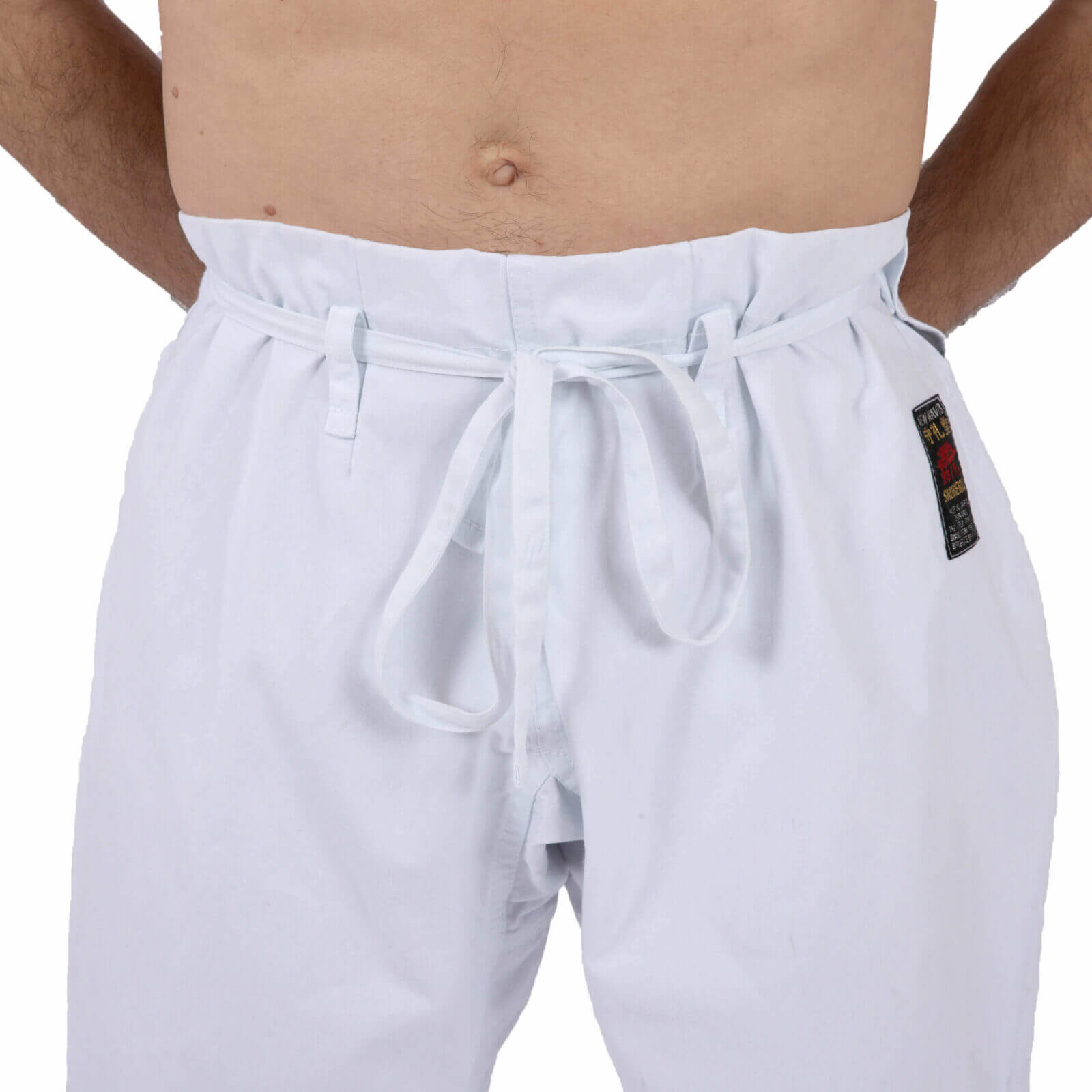 Die Hose ist in verschiedenen Größen von 130 cm bis 200 cm erhältlich und passt sich so jeder Körperform an. Es wird auch eine Etikettenoption„WKF Approved“ angeboten, mit der Sie an offiziellen Wettkämpfen der World Karate Federation teilnehmen können. Es ist wichtig zu beachten, dass alle Kleidungsstücke Shureido eine leicht bläuliche Färbung besitzen, um das Weiß des Karategi länger zu erhalten; diese Färbung verblasst nach und nach mit dem Waschen.
