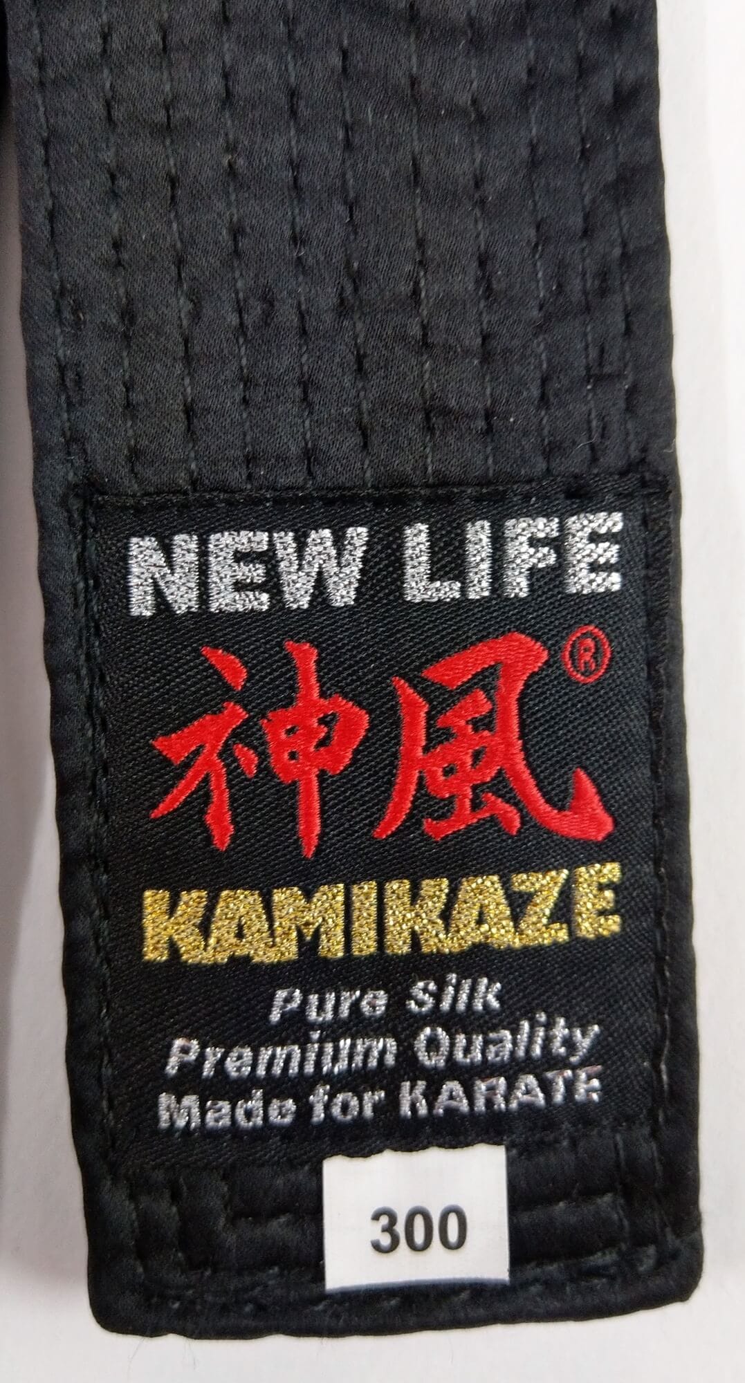 KAMIKAZE Schwarzer Karategürtel Extrabreit aus Naturseide : Hervorragende Qualität für Ihren schwarzen Karategürtel – KAMIKAZE Schwarzer Karategürtel in Premium-Qualität, individuell gestaltbar (Etiketten, Stickereien). Kamikaze-Etikett-NEW LIFE Premium Quality. Spezielle, reißfeste Innenkonstruktion, die mit hochwertiger Seide überzogen ist.