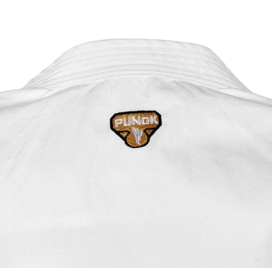 Dieser Karateanzug wurde für Karatekas entworfen. Der Schnitt dieses Karateanzugs und die hochwertigen Materialien sorgen für eine professionelle Passform und ein angenehmes Tragegefühl. Der klassische Look ist perfekt, um die alten Ursprünge des Stils zu repräsentieren. Der PUNOK WKF Karateanzug Kat a Gold ist aus einem speziellen bläulich-weißen Stoff gefertigt, den man nur bei hochwertigen japanischen Karateanzügen findet.