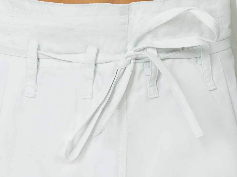 - Traditioneller Schnitt aus Okinawa: hochgeschnittene Hose mit Schnallen und vierfachen Falten