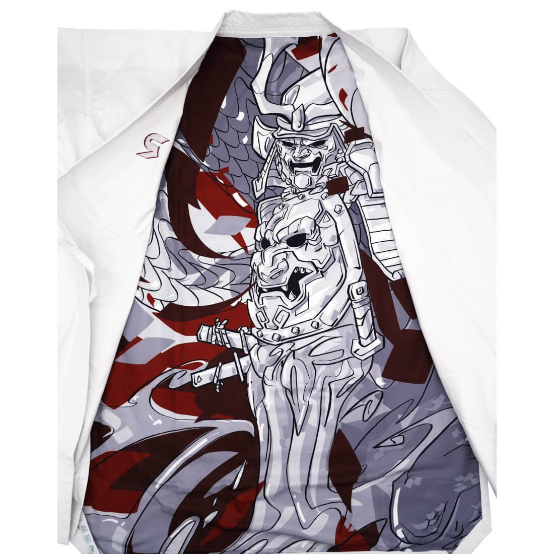 - Ästhetik: Fein gewebte Etiketten mit fein farbigen japanischen Motiven. Wunderschöne und raffinierte Stickereien. Außergewöhnliche künstlerische Zusammenarbeit. Karateanzug, der Sport und Kunst mit einer einzigartigen und neuartigen Verzierung verbindet. Innenfutter der Jacke, das die Arbeit des Künstlers abbildet. Limitierte Auflage mit Echtheitszertifikat für jeden gelieferten Karateanzug.