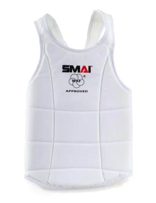 Der SMAI Karate Brust panzer für Männer ist ein hochwertiger Brustschutz, der entwickelt wurde, um den Anforderungen von Karate-Wettkämpfern im Kumite gerecht zu werden. Er wird nach den strengen Spezifikationen der World Karate Federation (WKF) hergestellt und ist für alle offiziellen internationalen Wettkämpfe zugelassen. Dieser Brustpanzer ist außerdem nach den europäischen CE-Normen EN 13277/1:2000, EN 13277/3:2014 und EU 2016/425 zertifiziert und garantiert somit optimale Sicherheit während des Kampfes.